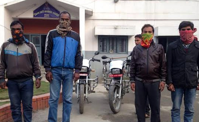 सलमान खान २९ पुस, भैरहवा । रुपन्देहीमा पेस्तोल देखाएर रकम लुट्ने गिरोह प्रहरीले पक्राउ गरेको छ । करिब डेढ महिनाको लामो अनुसन्धान र खोजतलास पछि रुपन्देही प्रहरीले गिरोहलाई पक्राउ गरेको हो । गत मंसिर ११ गते रुपन्देहीको सिद्धार्थनगर नपा १३ मा रहेको डिप्रोक्स लघुवित विकास बैंकको कर्मचारी बासुदेव भट्राईले बैंकको विभिन्न गाउँ रहेको समुहबाट १ लाख ६२ हजार १ सय रुपैयाँ संकलन गरेर बैंक फर्किने क्रममा रुपन्देहीको गोनाहा ९ स्थिती समेरहनामा लुटेरा गिरोहले भट्राईको लु २१ प ५९६० नम्बर प्लेटको मोटरसाइकल रोकेर कन्चटमा पेस्तोल राखी ज्यान मार्ने धम्की दिएर उक्त रकम, मोटरसाइकल र दुई थान मोबाइल गरी कुल ४ लाख ३ हजार बराबरको धनमाल लुटेर लगेका थिए ।घटना पश्चात जिल्ला प्रहरी कार्यालय रुपन्देहीमा घटनाको विषयमा उजुरी परेपछि रुपन्देहीले तिव्र अनुसन्धान र लुटेराको खोजतलास सुरु गरेको थियो । लुटेराको खोजतलासको क्रममा लुटपाटकामा प्रमुख भुमिका निभाउने रुपन्देही कम्हरीया ६ का २२ वषर्ीय रुपेश बनिया नै पक्राउ परेपछि क्रमस विभिन्न समयमा लुटपाटमा संग्लन अन्य उनको ३ जना सहयोगी पनि पक्राउ परेको जिल्ला प्रहरी कार्यालय रुपन्देहीले भैरहवामा मंगलबार पत्रकार सम्मेलनको आयोजना गरेर जनाएको छ । पक्राउ पर्नेहरुमा घटनामा प्रमुख भुमिका निभाउने बनिया, पीडित भट्राईको पिछा गरेर खबर गर्ने र चोरीको धनमाल बाडी खाने रुपन्देही गंगोलियका ८ का पप्पु भन्ने ओम प्रकाश पाल गडेरिया, पेस्तोल देखाई धम्की दिने र लुटेको मोटरसाइकल चलाएर लग्ने रुपन्देही हाटीबनगाई ६ का पवन कुमार राजभर र अभियुक्तलाई हतियार उपलब्ध गराएर आफ्नो भाग बापत लुटेको मोटरसाइकल लिने रुपन्देही सिद्धार्थनगर नपा १३ का राजकुमार हरिजन रहेका छन् । तर अनुसन्धानले घटनामा थप एक व्यक्ति संग्लन रहेको देखिएको कारण त्यस व्यक्तिको खोजतलास जारी रहेको रुपन्देहीका प्रहरी प्रमुख एवं प्रहरी उपरीक्षक बुद्धिराज गुरुङ्गले बताए । उनका अनुसार पक्राउ परेका राजभरले विगतका केही अपराधिक घटनाको अनुसन्धान प्रहरीलाई सहयोग समेत गरेको पाइएको छ । लुटेराहरुले घटनामा प्रयोग भएको लु १३ प ४१५० र लु ३ प ४५०५ नम्बर प्लेटको २ वटा मोटरसाइकल र १६ हजार मुल्य बराबरको २ थान मोबाइल समेत बरामद भएको रुपन्देहीका प्रहरी नायब उपरीक्षक एवं प्रवक्ता रामेश्वर कार्कीले बताए । लुटेराहरुले लुटेको रकम खर्च गरिसकेको र मोटरसाइकल सिमावर्ती भारतीय बजार नौतनवामा आफन्तको घरमा राखेको अनुसन्धान खुलेको कारण मोटरसाइकल केही दिनमा आउन सक्ने उनले बताए । उनले पक्राउ परेका माथि डाका चोरी अपराध गरेको अन्र्तगत जिल्ला अदालतमा मुद्दा दायर गरी थप अनुसन्धान जारी रहेको बताए ।