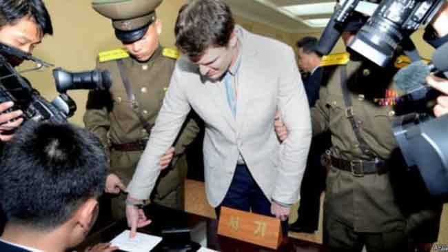 २१ वर्षीय ओटो वाम्बियर जनवरीमा उत्तर कोरिया गएका थिए जहाँ उनले एक होटलबाट एक राजनीतिक प्रचारको नारा चोर्न लागेको अवस्थामा पक्राउ गरिएको थियो । हृवाइट हाउले उत्तर कोरियाले आफ्नो राजनीतिक एजेन्टको लागि अमेरिकी नागरिकलाई प्रयोग गरेको आरोप लगाएको छ । हृवाइट हाउसले अमेरिकी छात्रको माफी र तुरुन्त रिहाइको माग गरेको छ । बीबीसीका अनुसार पहिले कहिल्यै पनि विदेशी कैदिलाई यस्तो कठोर किसिमको सजाय दिइएको थिएन । वाम्बियर युनिभर्सिटी अफ भर्जिनियाका छात्र हुन् । २ जनवरुीमा उनलाई उत्तर कोरियाको विमानस्थलबाट पक्राउ गरिएको थियो । उनीमाथी सत्रुतापूर्ण काम गरेको आरोप लागेको छ । उत्तर कोरियाको सरकारी टेलिभिजनमा वाम्बियरले आफूले नारा चोर्न खोजेको स्विकार गरेका छन् । आफूलाई घुमाउन ल्याउने चर्चको समूहले यादगार चिज खोज्न भनेका थिए । उत्तर कोरियामा अमेरिकी पर्यटन कानूनी रुपमा स्विकार्य भएपनि अमेरिकाको विदेश मन्त्रालयले उत्तर कोरियाको भ्रमण नगर्न सल्लाह दिदै आएको छ ।