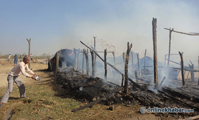 लोध चमार र बुधही मुराउको घरबाट आगलागी सुरु भएको थियो । खाना पकाउने बेलामा बालेको आगो राम्ररी ननिभाएका कारण आगो लागेको बताइएको छ । तर, तौलिहवा नगरपालिकाको दमकलको सहयोगमा स्थानीयले आगो नियन्त्रणको प्रयास गरिरहेका छन् ।